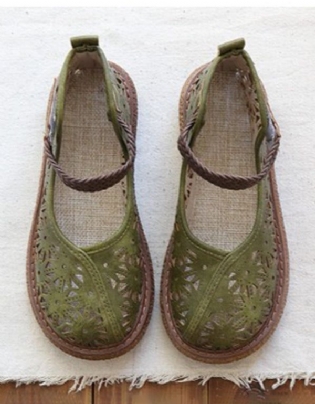 Vintage Tyk Hæl Velcro Grønne Sandaler Til Kvinder