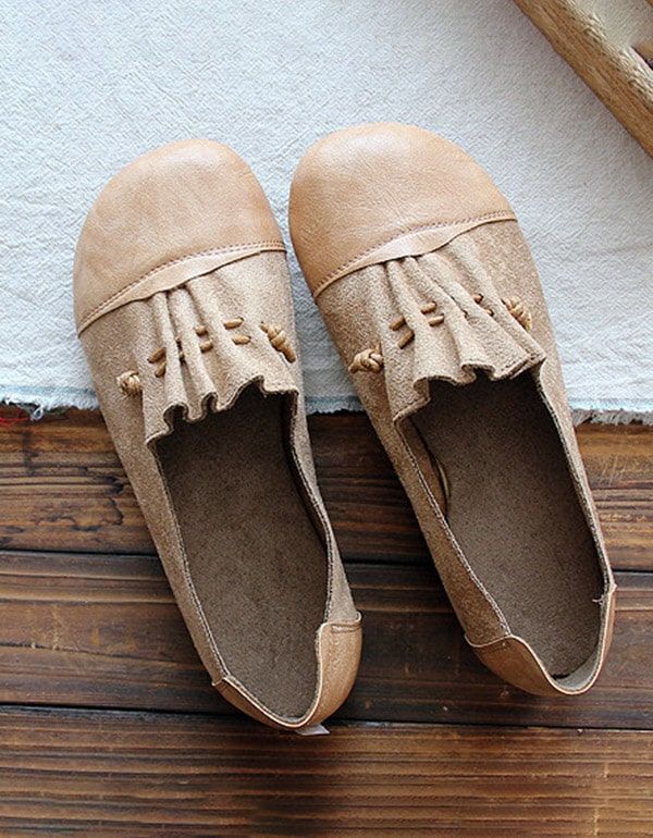 Dame Rundt Hoved Ruskind Retro Flade Sko
