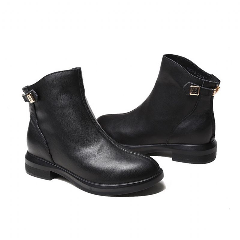 Efterår Vinter Mode Læder Lavhælet Martin Korte Damestøvler | Gave Sko