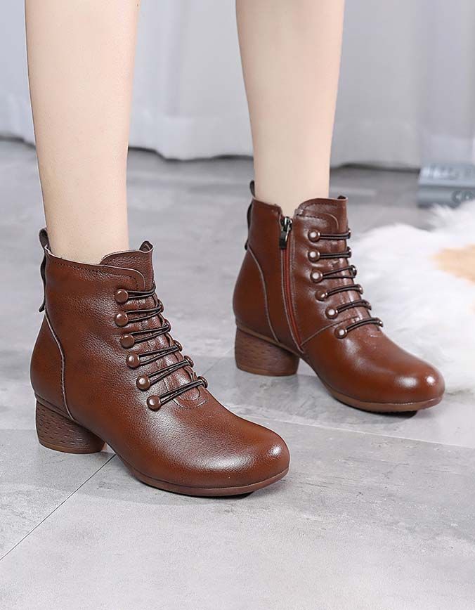 Efterår Vinter Retro Læder Behagelige Kvinder Chunky Støvler
