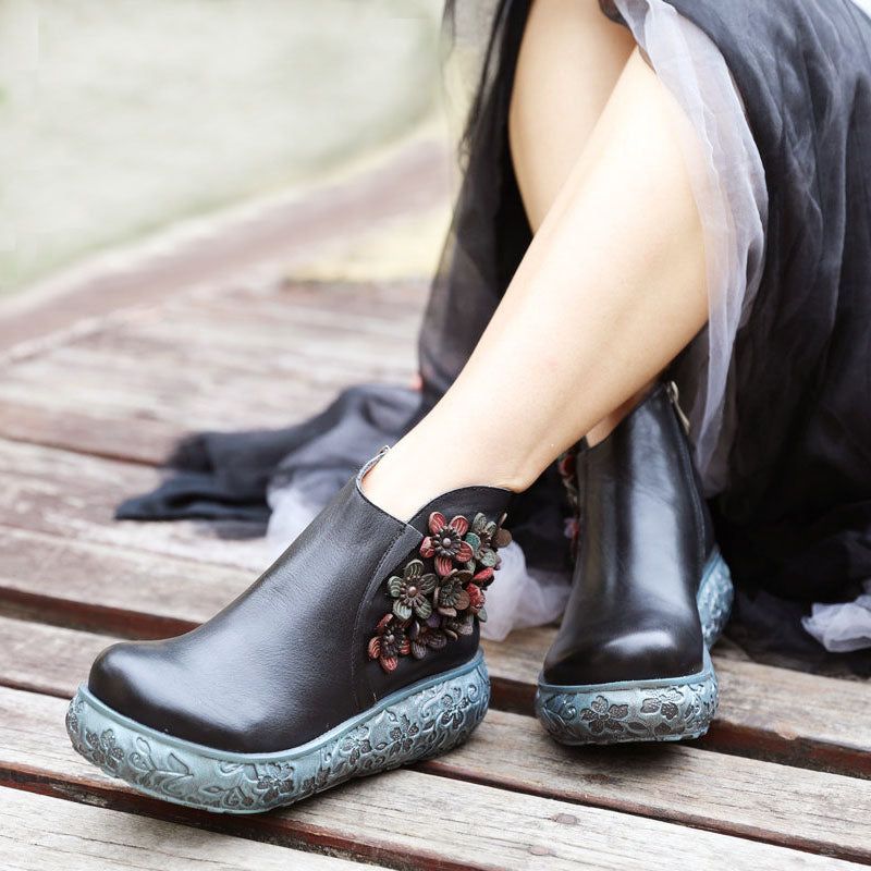 Flower Håndlavede Retro Kilestøvler |gavesko