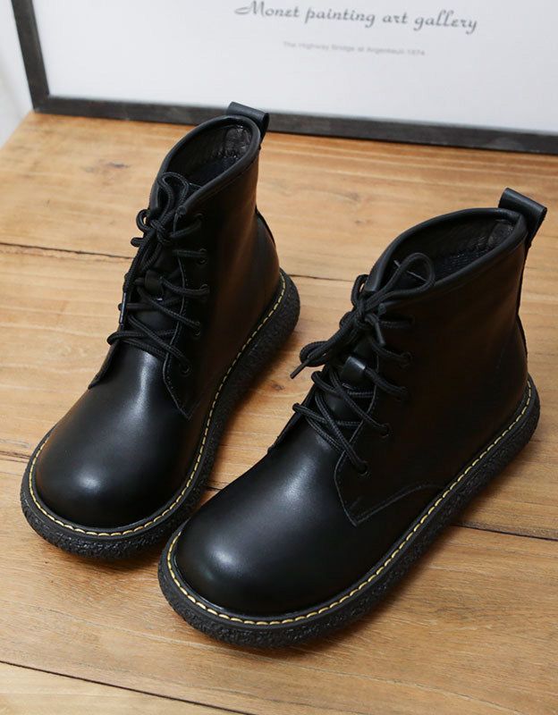 Håndlavede Læderplatform Retro Støvler Til Kvinder