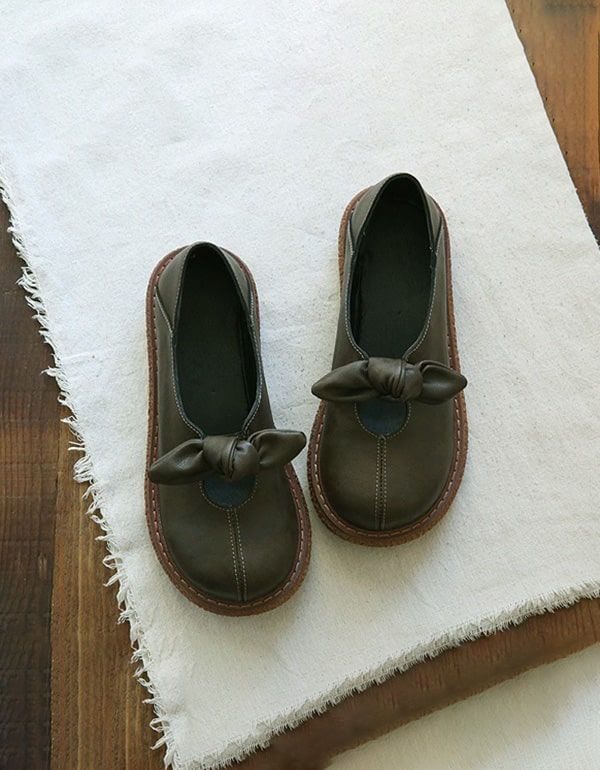 Håndlavede Runde Bredhovede Retro Læder Fjedersko