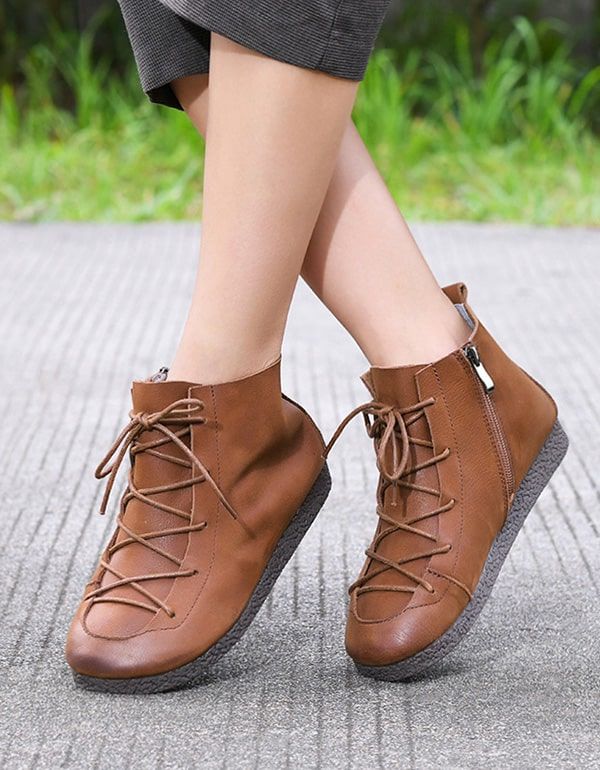 Håndlavet Læder Dame Retro Flade Støvler