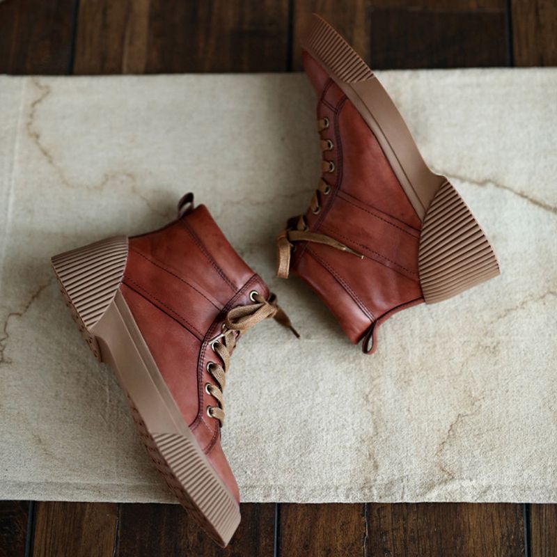 Håndlavet Læder Retro Tykke Martin Korte Damestøvler | Gave Sko