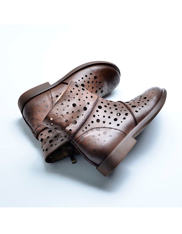- Forår og efterår læder håndlavede sko hule romerske cool støvler sidelynlås damestøvler