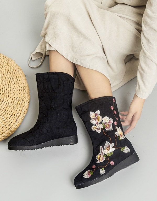 Kinesisk Etnisk Stil Broderede Vinter Bomuldsstøvler
