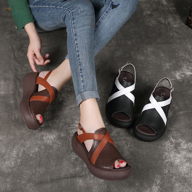 Læder Fish Toe Spænde Kile Sommer Sandaler