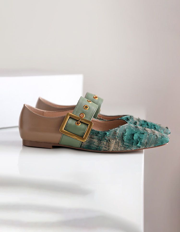 Plaid Low Square Head Mary Jane Chic Flats