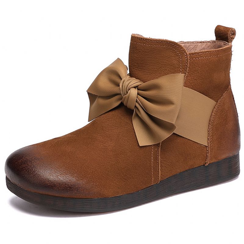 Vinter Retro Læder Håndlavede Bowknot Damestøvler