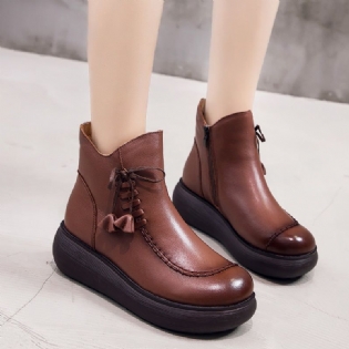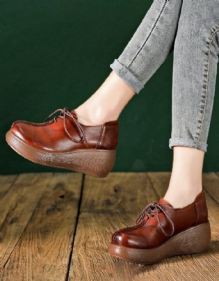 Håndlavede Komfortable Retro Kilestøvler Med Snøre