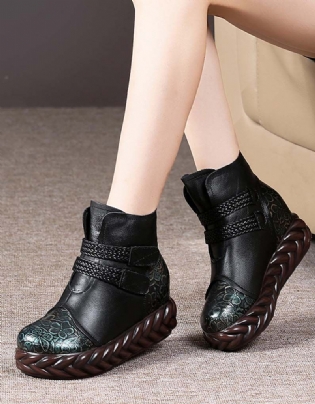 Retro Læder Håndlavede Kilestøvler Til Kvinder