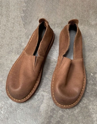 Dame Rundt Hoved Ruskind Retro Flade Sko